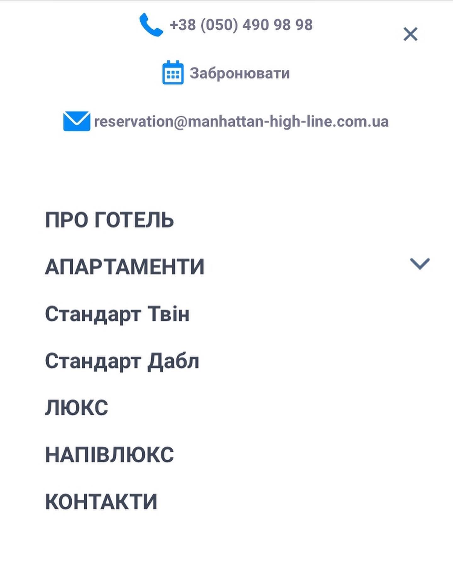 Разработка имиджевого сайта для гостиничного комплекса Manhattan в Киеве.